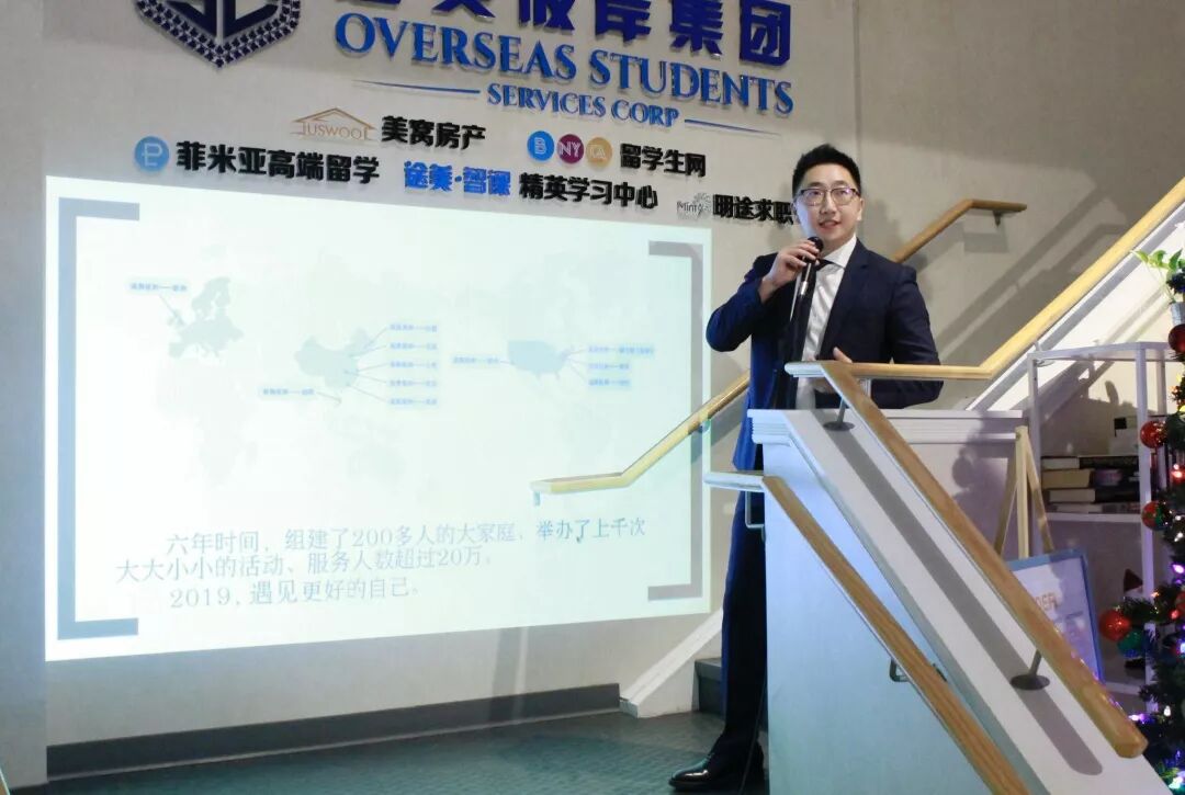 在活动致辞中,王兆楠先生给大家讲述了途美彼岸集团的发展历程:从2012年在麻省理工大学的新春晚会上宣布成立“波士顿留学生网”,经过六年的发展,先后建立了“纽约留学生网”、“加州留学生网”、“美窝房产”、“菲米亚高端留学”、“途美·智课学习中心”、“明途求职”。2018年,途美彼岸集团总部入驻波士顿市中心的“留学生之家”,成为了北美最大留学生服务基地。